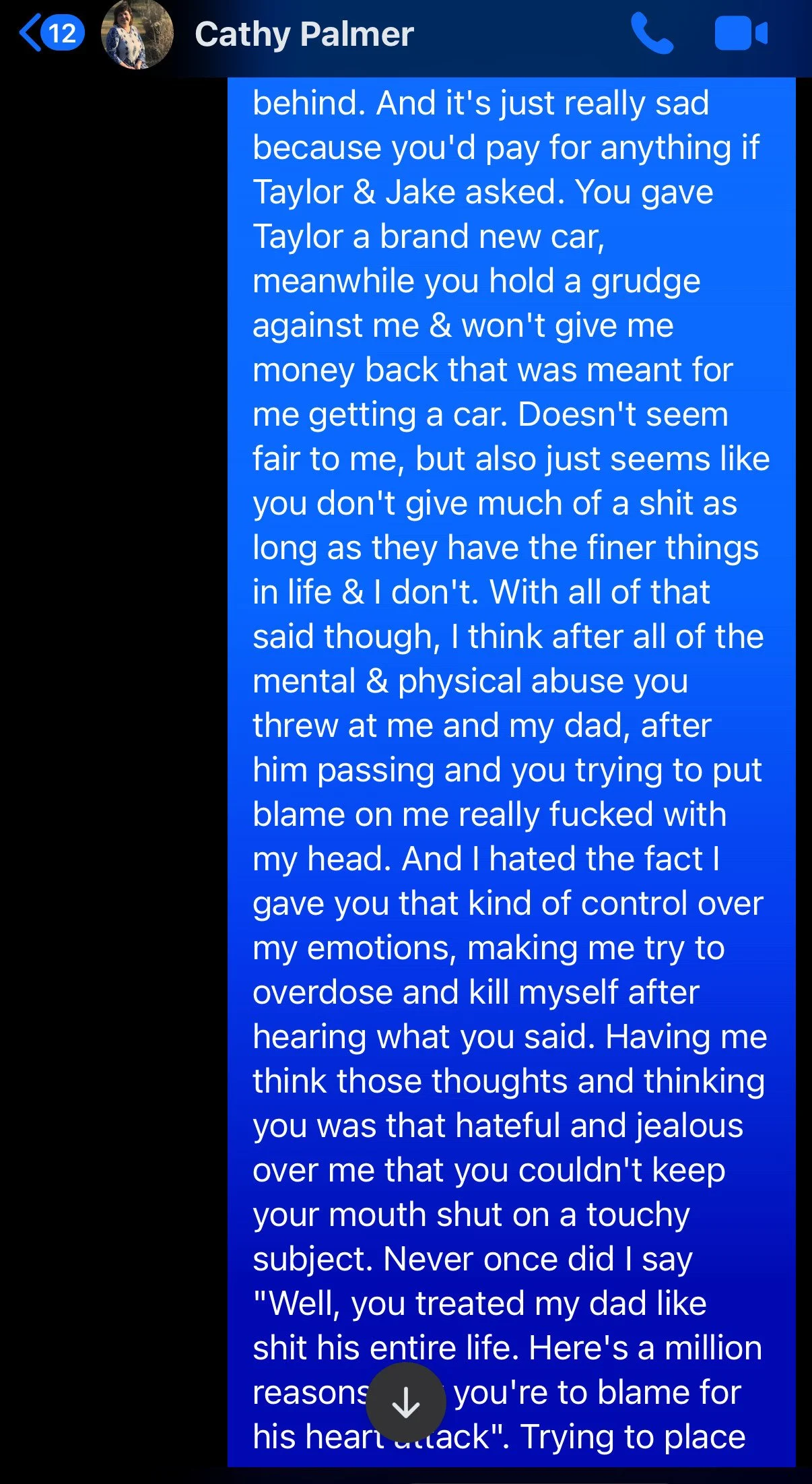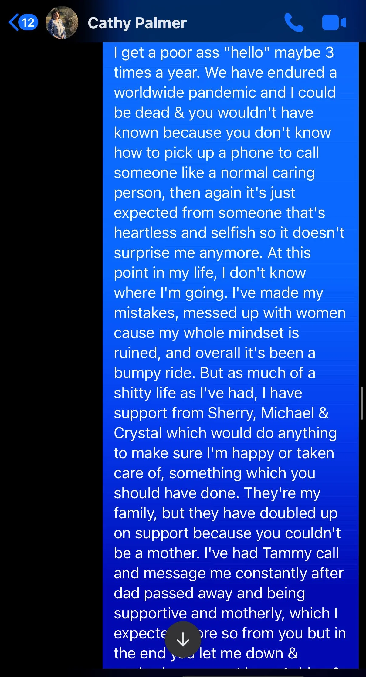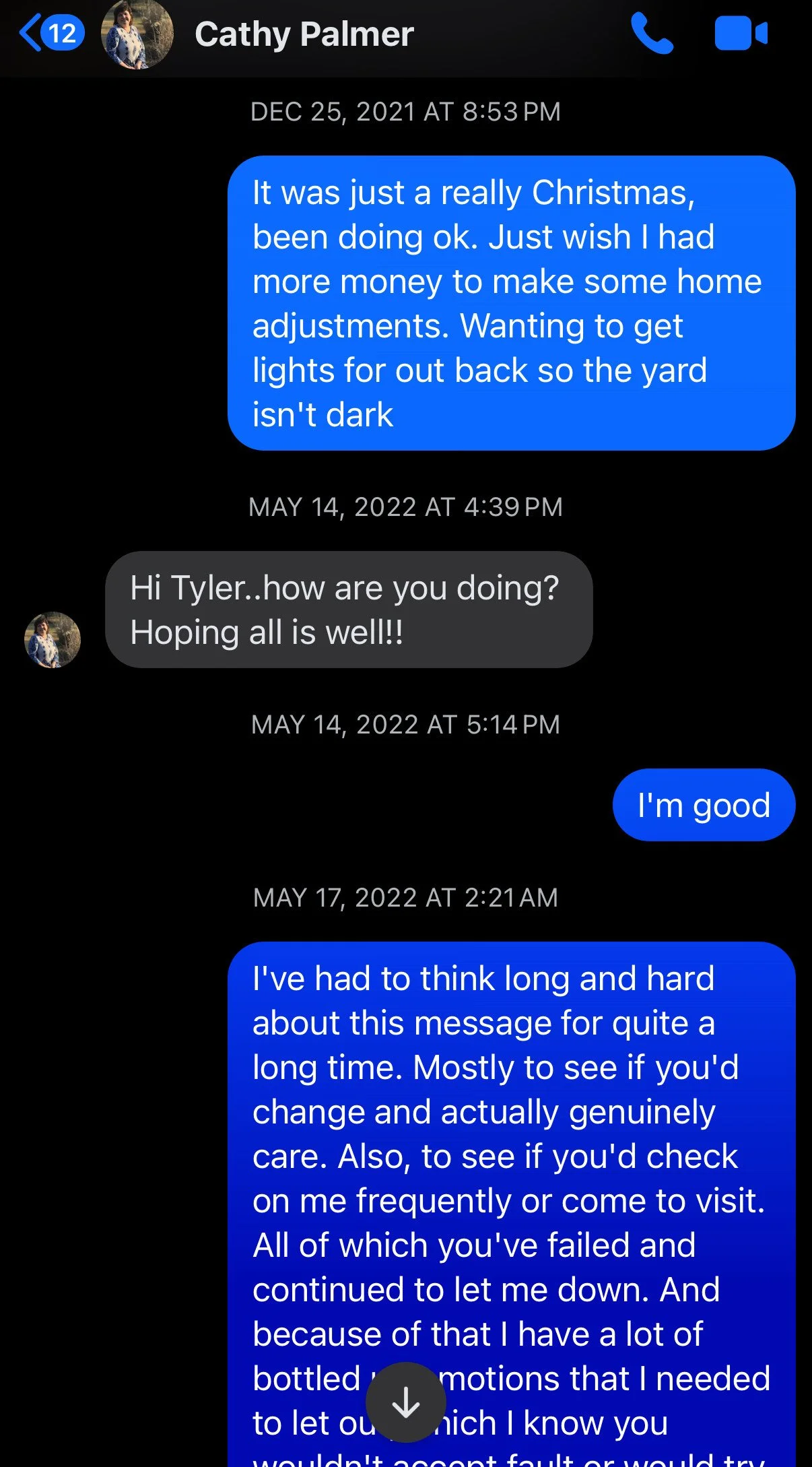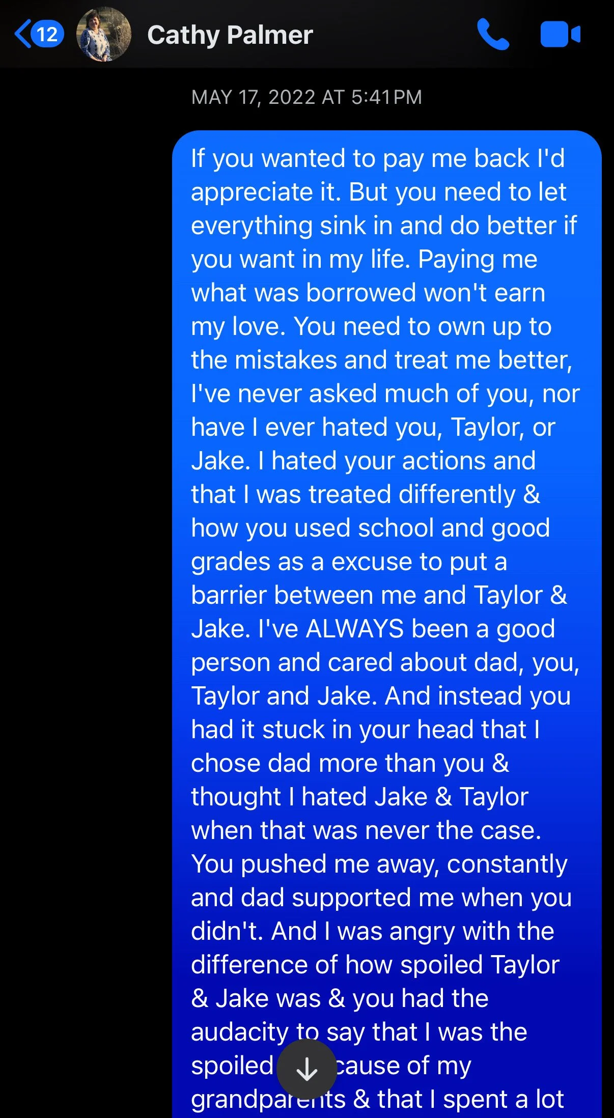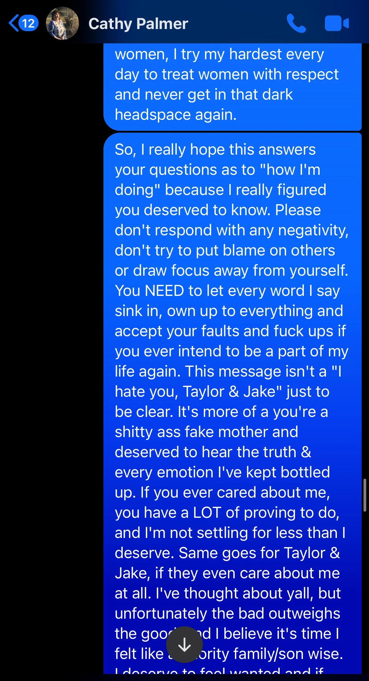 The last time I spoke to my step mom was in 2022, this was one of the last messages I sent her. I eventually got tired of giving effort, then she would randomly message me once every few months and wasn’t consistent or trying. With all of the pain and trauma I had bottled up for years, it eventually came out.