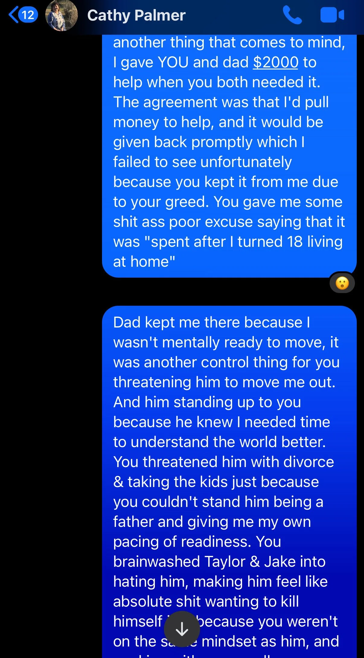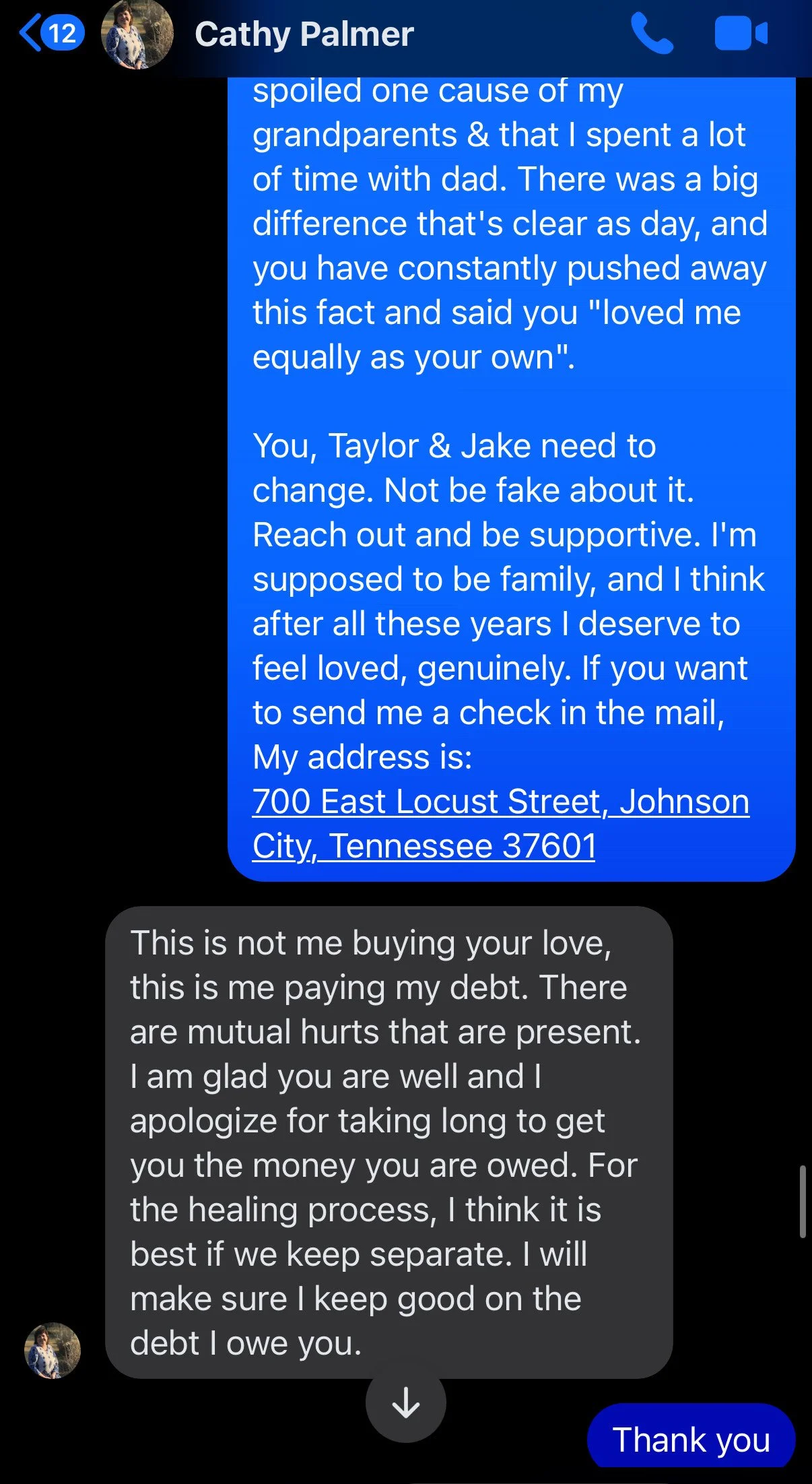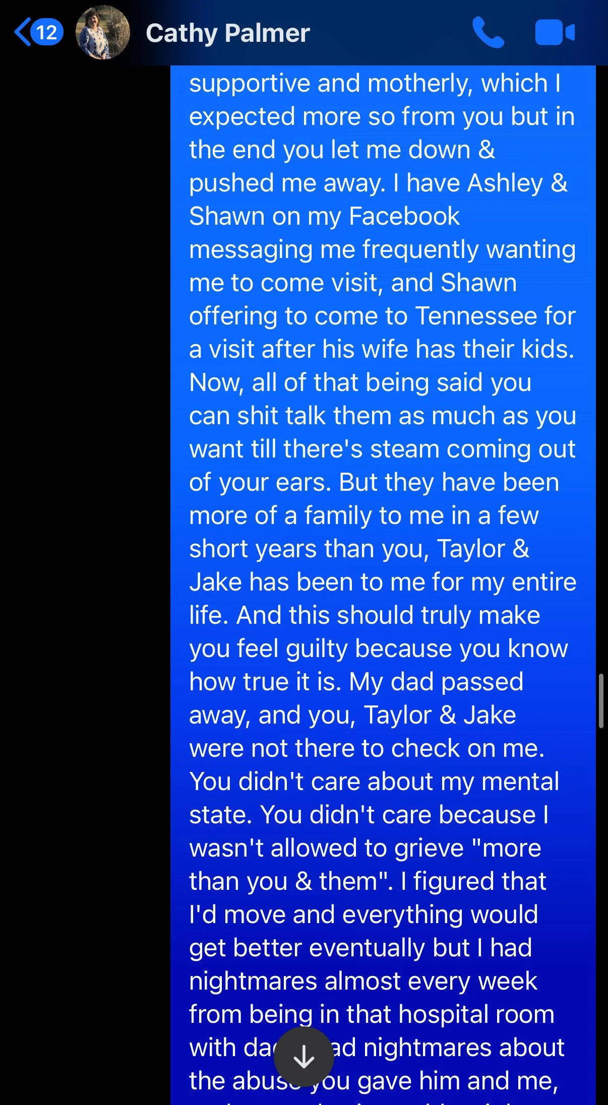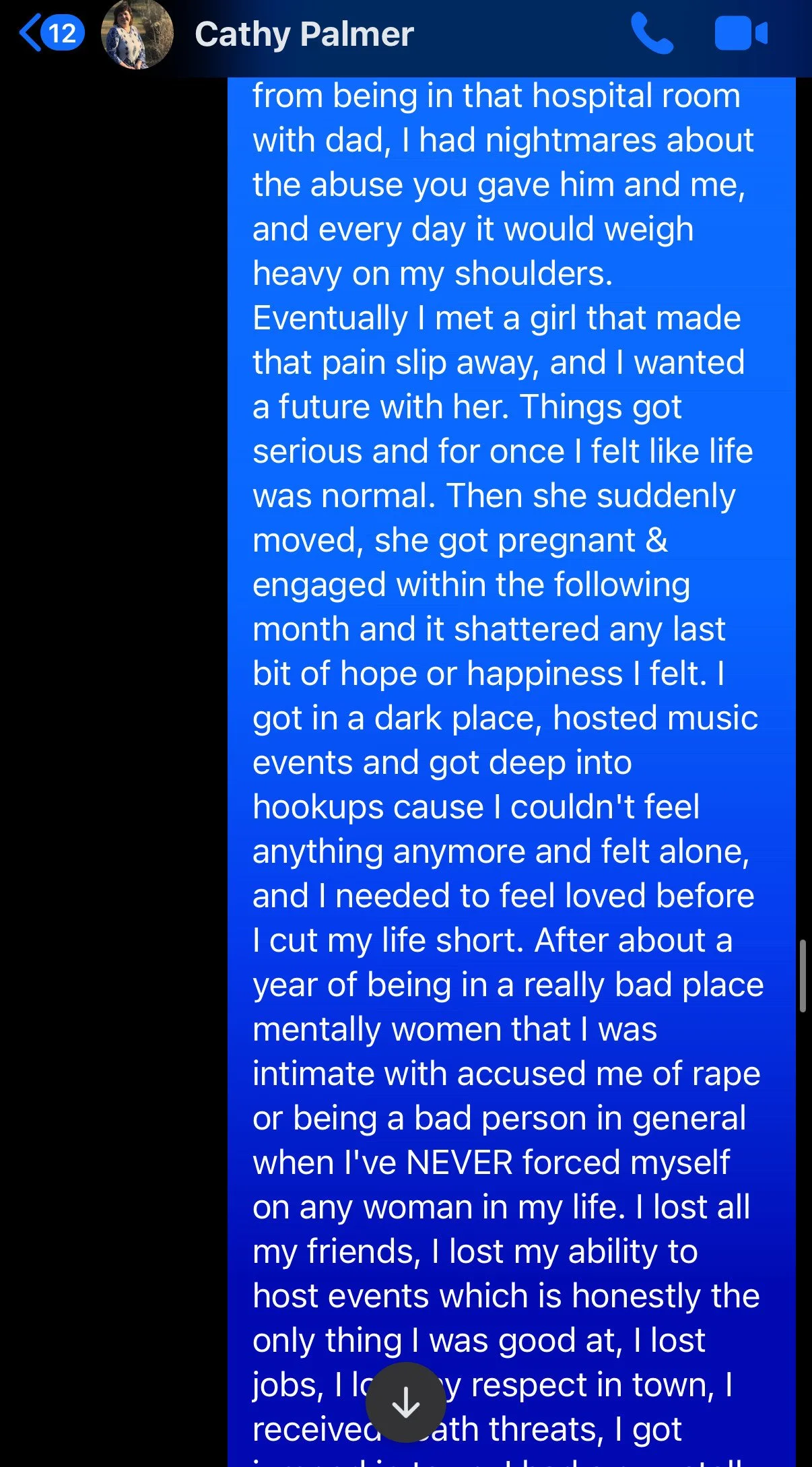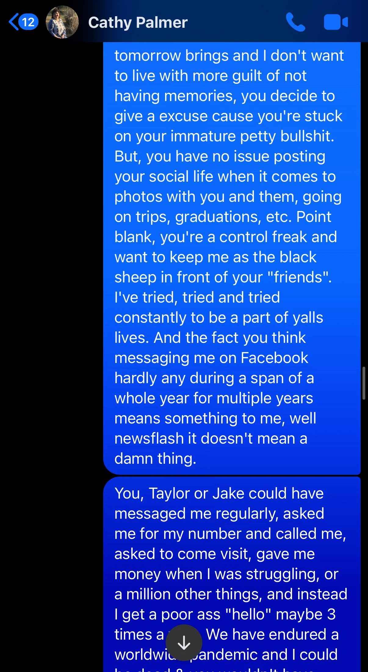 The last time I spoke to my step mom was in 2022, this was one of the last messages I sent her. I eventually got tired of giving effort, then she would randomly message me once every few months and wasn’t consistent or trying. With all of the pain and trauma I had bottled up for years, it eventually came out.