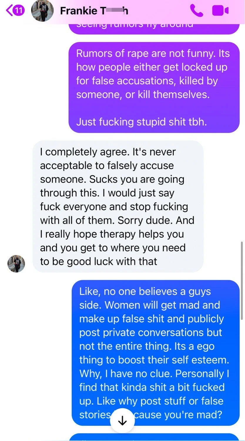 At the next event “Lights & Sound” on July 23rd it consisted of mostly new artists. During the event I was working door with Cj and there was a girl named Su that came up to me and started talking about music. She went back to dancing and I continued checking people in. Later on I had to go pee and as I came out I saw a guy trying to take her upstairs. I told him that upstairs was restricted due to the venue owners rules so they had to come back down to the main room. After telling him that he got really defensive and cussed me out, I could see she had something wrong with her so as he continued arguing & trying to take her upstairs I decided to kick him out. He grabbed his friend from the music room and she told me to talk to her in the bathroom. She tells me she was tripping bad on acid for her first time and didn’t feel comfortable around that guy. So, I texted Doug one of my security guys to come help me out and bring water. As we got her outside to cool off, the guy & his friend come outside and brought one of the djs Zach G which operates the company “Zodiak” based out of Annapolis Maryland. They all kept trying to get her to leave with them saying “she rode with us, we were going to get her home safe”. I then told them that she told us her car was in the parking lot and she came by herself so they needed to leave before I called the cops on them. The main guy kept walking around the perimeter of the venue and they got a Uber to pick them up. Zach & his friends pulled into the alleyway with the Uber trying a final time to get her to leave, and I told the driver to leave before I busted out his car windows. Eventually at the end of the night sales were not good and some of the djs were upset over not getting paid, which I discussed another event and offering advance payment & prime slots to perform which they agreed to. After the event, me and the guys doing security had gotten ahold of Su’s sister to come pick her up and she came to get her. Me & Su remained friends for awhile after the event going to see the band Red in concert in Columbia MD and also hanging out at the park near me, she told me she was thankful that I protected her from a bad situation (screenshot below). After that stuff occurred, I also spoke to Robby C (his profile is now deleted) about that situation in a screenshot. Soon after the event people began to find out about the charge from what happened with the case about Abbie that’s posted below. Most people stopped playing my events and said I was taking advantage of people in the bathrooms & letting underage people in when I did neither of those things during the entire time running Chaotic Events. Andrew, one of the djs from the first venue event “Dimension” did ask if I could let some of his friends that were 17 come for his set and I allowed that one time only & marked them at the door. The following 2 parties “PokeParty” on December 9th 2016 and “Neon Wonderland” on January 12th 2017 were the final events hosted under Chaotic Events. Also while I was doing events under Chaotic Events, I didn’t have a big promotion team or any financial help. I didn’t always make the best decisions with budgeting things properly, or notify acts properly about changes to set times or the event itself. Usually I was just embarrassed on my end when I made mistakes and tried to brush them off instead of taking care of some of the situations properly. I had angered different various djs I worked with while hosting events in Baltimore due to that and I openly wanted to apologize about that if anyone was ever upset with how I handled business or event related situations.